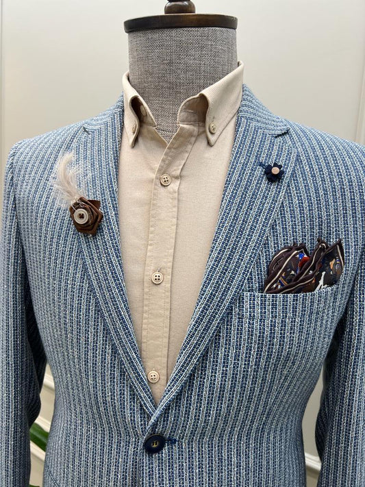 Tampa Blue Slim Fit Striped Cotton Blazer