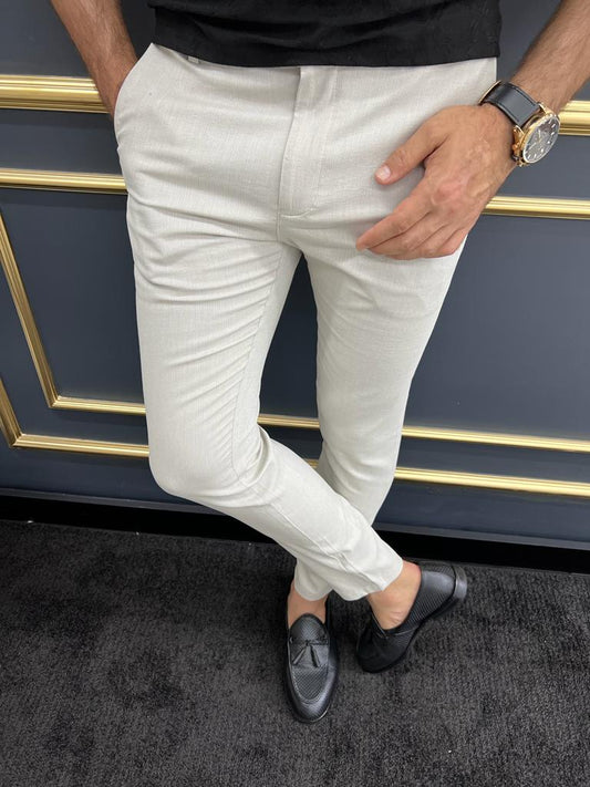 Tampa Beige Slim Fit Linen Pants