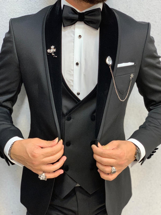Ventura Black Slim Fit Velvet Shawl Lapel Tuxedo