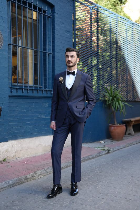Eden Navy Blue Slim Fit Peak Lapel Tuxedo