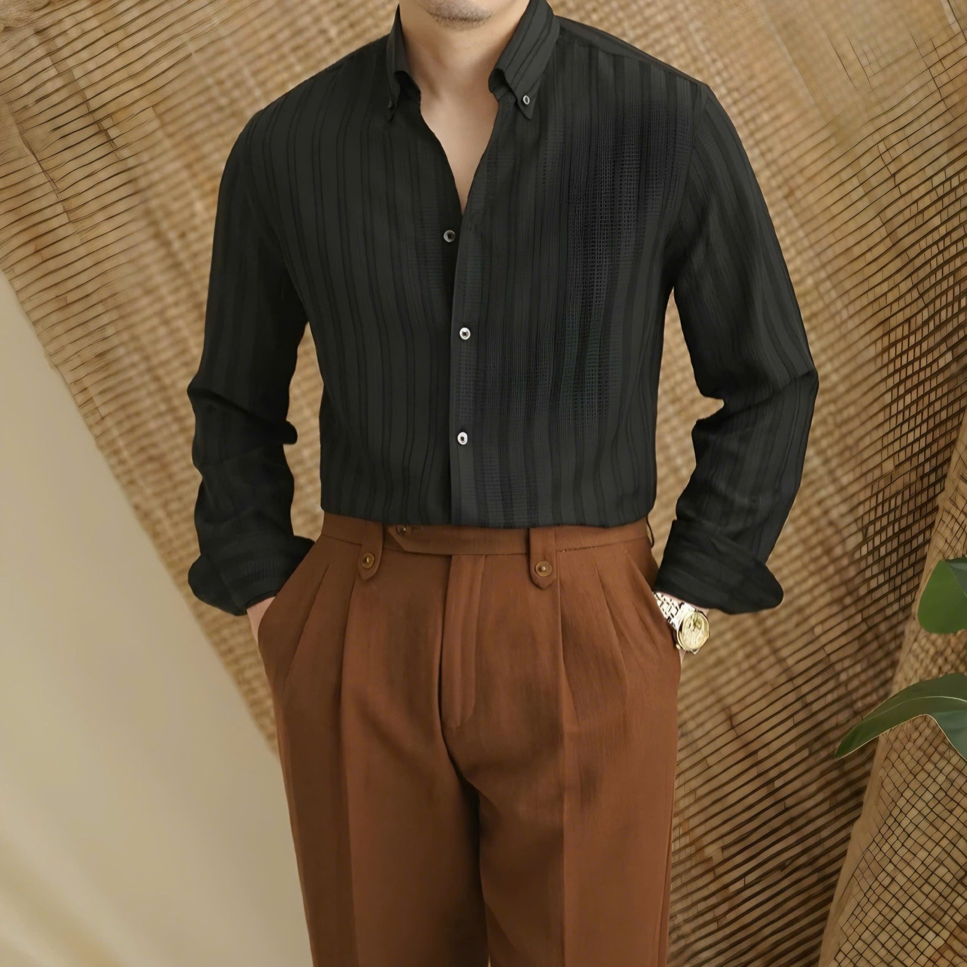 Baron of Vienna Shirt, a piece that exudes sophistication with its textured seersucker and cotton fabric. Ideal for the man seeking timeless elegance, the design offers freshness and comfort, making it perfect for both formal and casual occasions. The combination of materials ensures a soft touch and a flawless look, elevating any outfit with distinction.