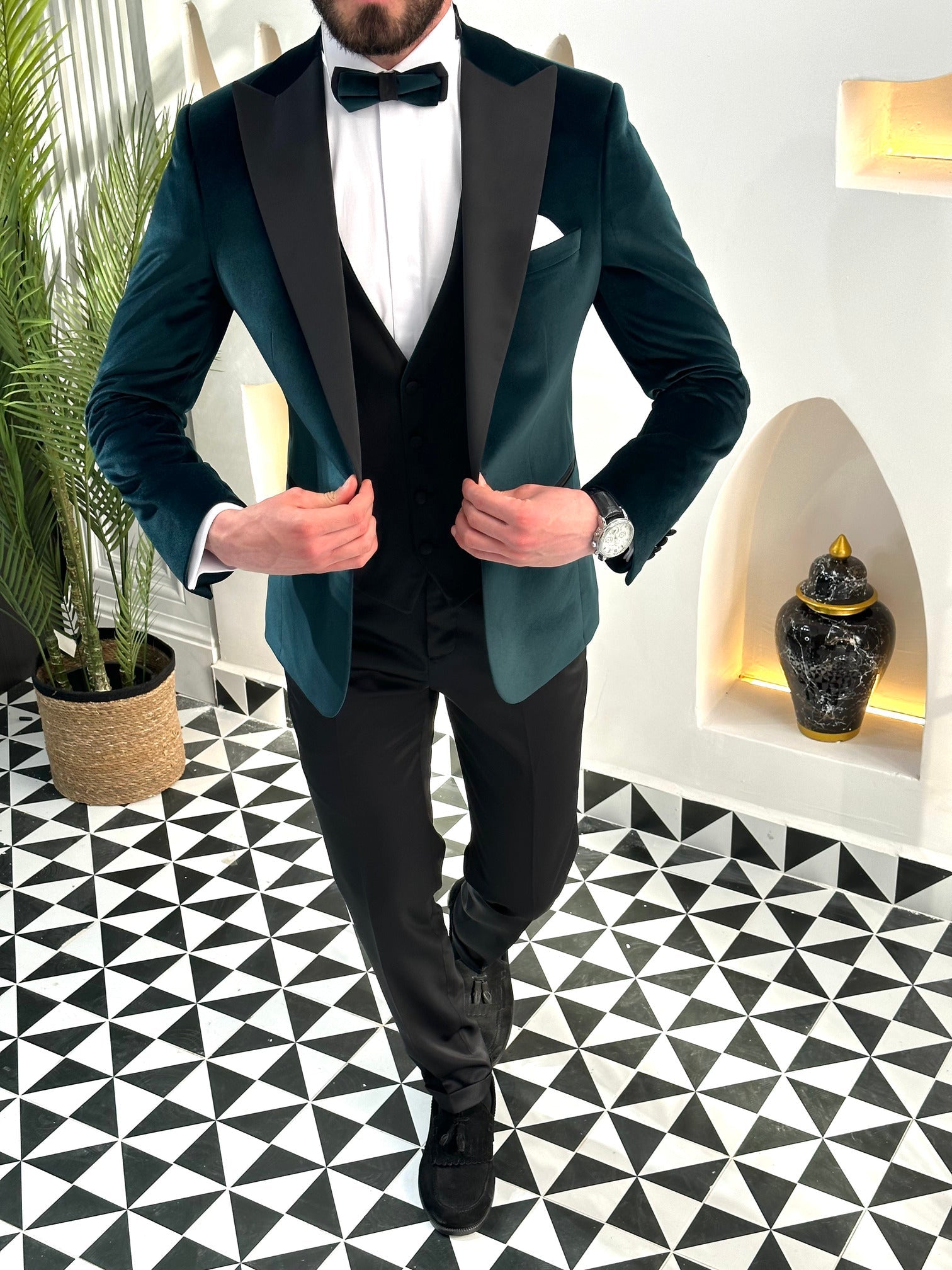 Emerald Velvet Slim-Fit Tuxedo 3-Piece