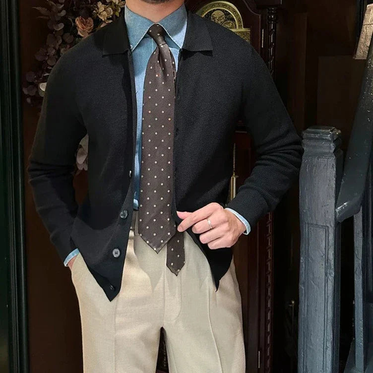 Introducing the Buttoned Knit Cardigan, an essential piece for a versatile men's wardrobe. Made from high-quality polyester, this cardigan offers comfort and style year-round. With a single button closure and a turned-down collar, it is perfect for shopping activities and casual occasions.