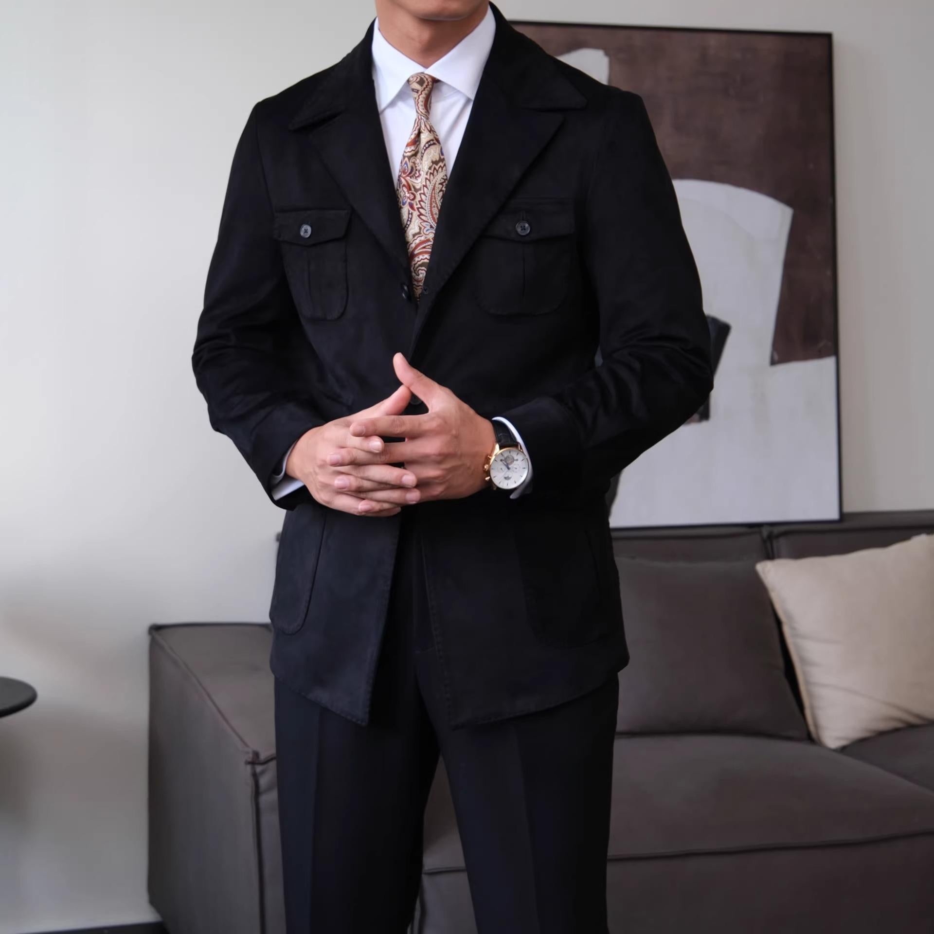 his men's suede safari jacket combines adventure-inspired design with luxurious suede fabric. Featuring a classic safari silhouette and functional details, this jacket delivers refined style for the modern gentleman. Available in brown, black and green.