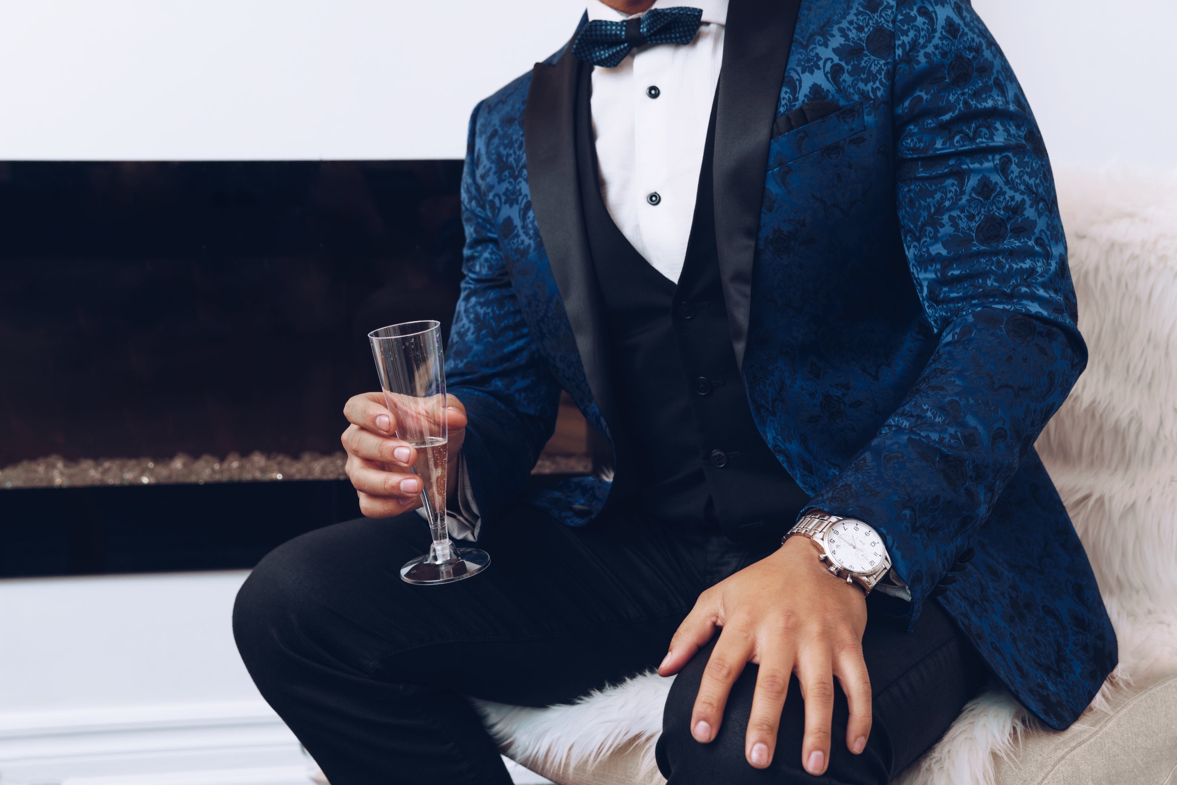 Italian Navy Blue Tuxedo - Luxury Shawl Collar Groom Suit