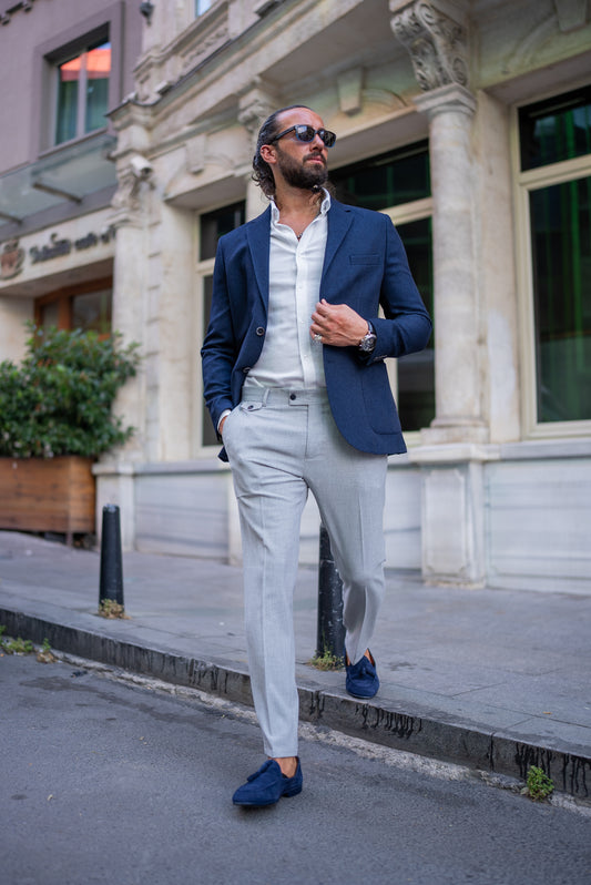 Brabion James Navy Blue Slim Fit Notch Lapel Blazer