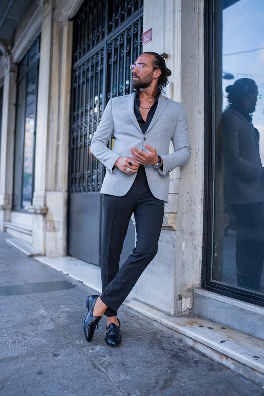 Brabion Liam Gray Slim Fit Notch Lapel Blazer - Versatile Tailored Jacket