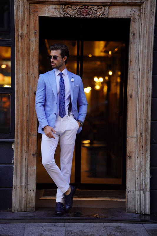 Brabion Noah Sky Blue Slim Fit Double Breasted Striped Blazer