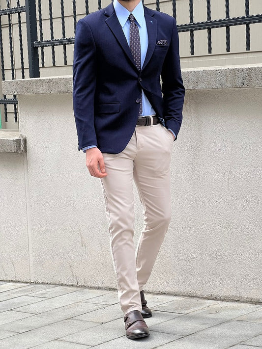 Hazel Navy Blue Slim Fit Notch Lapel Blazer