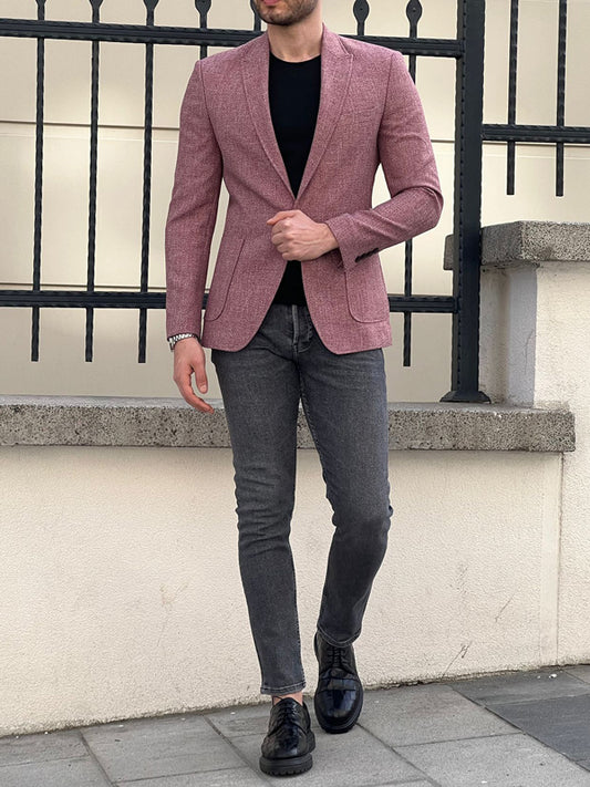 Hazel Burgundy Slim Fit Peak Lapel Blazer