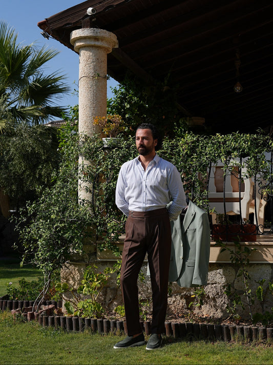Brown High Waist Pleated Buckle Pants - Regular Fit