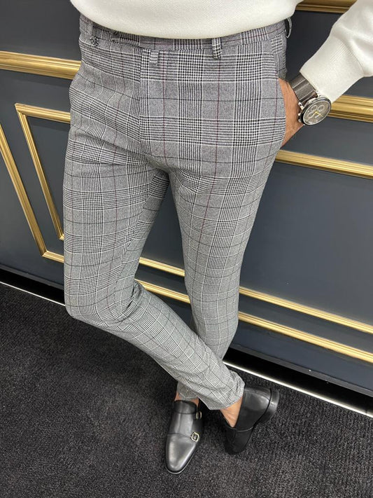 Berton Gray Black Slim Fit Plaid Pants for Any Occasion