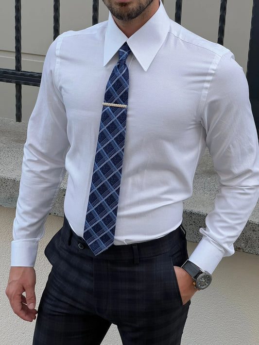 Brabion Milano Slim Fit Pointed Collared White Cotton Shirt