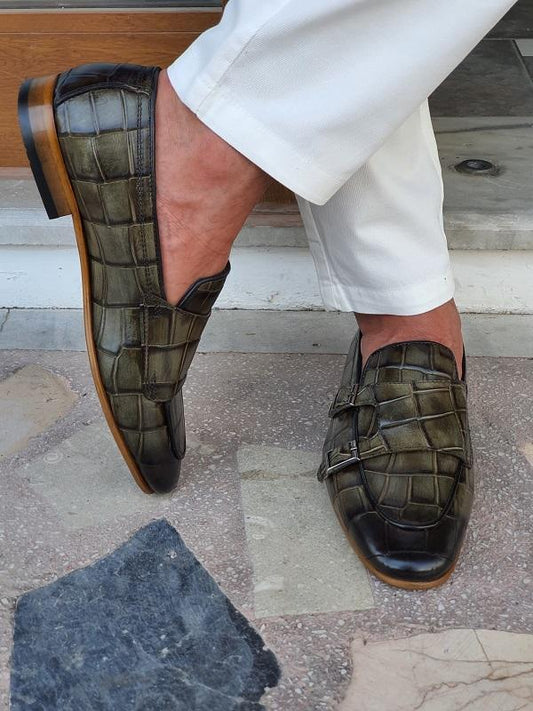 Livorno Green Double Monk Strap Loafers: Elegant Footwear for the Modern Man
