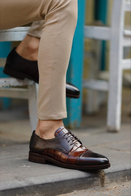 Empire Brown Cap Toe Crocodile Pattern Derby Shoes