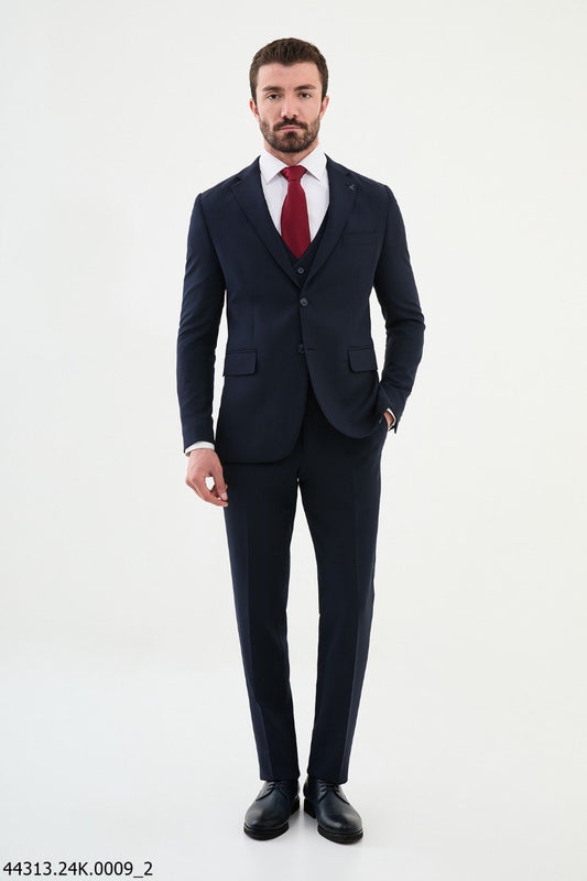 Brabion Diego Navy Blue Notch Lapel 3 Piece Wool Suit