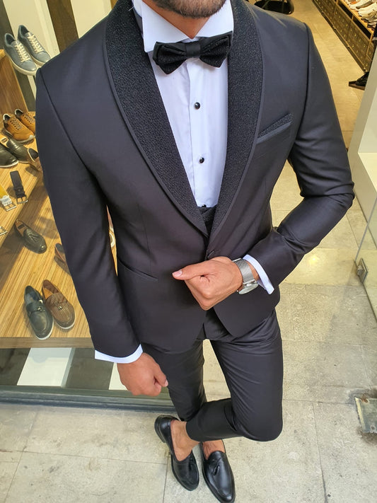 Stefano Black Slim Fit Shawl Lapel Tuxedo
