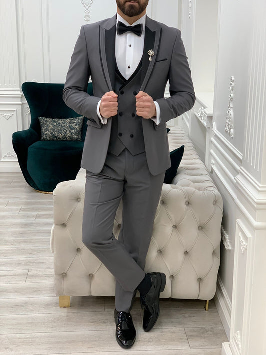 Ardean Gray Slim Fit Peak Lapel Tuxedo: A Statement of Sophistication