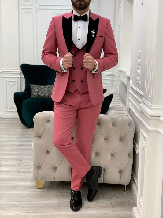 Eden Pink Slim Fit Velvet Peak Lapel Tuxedo for Men