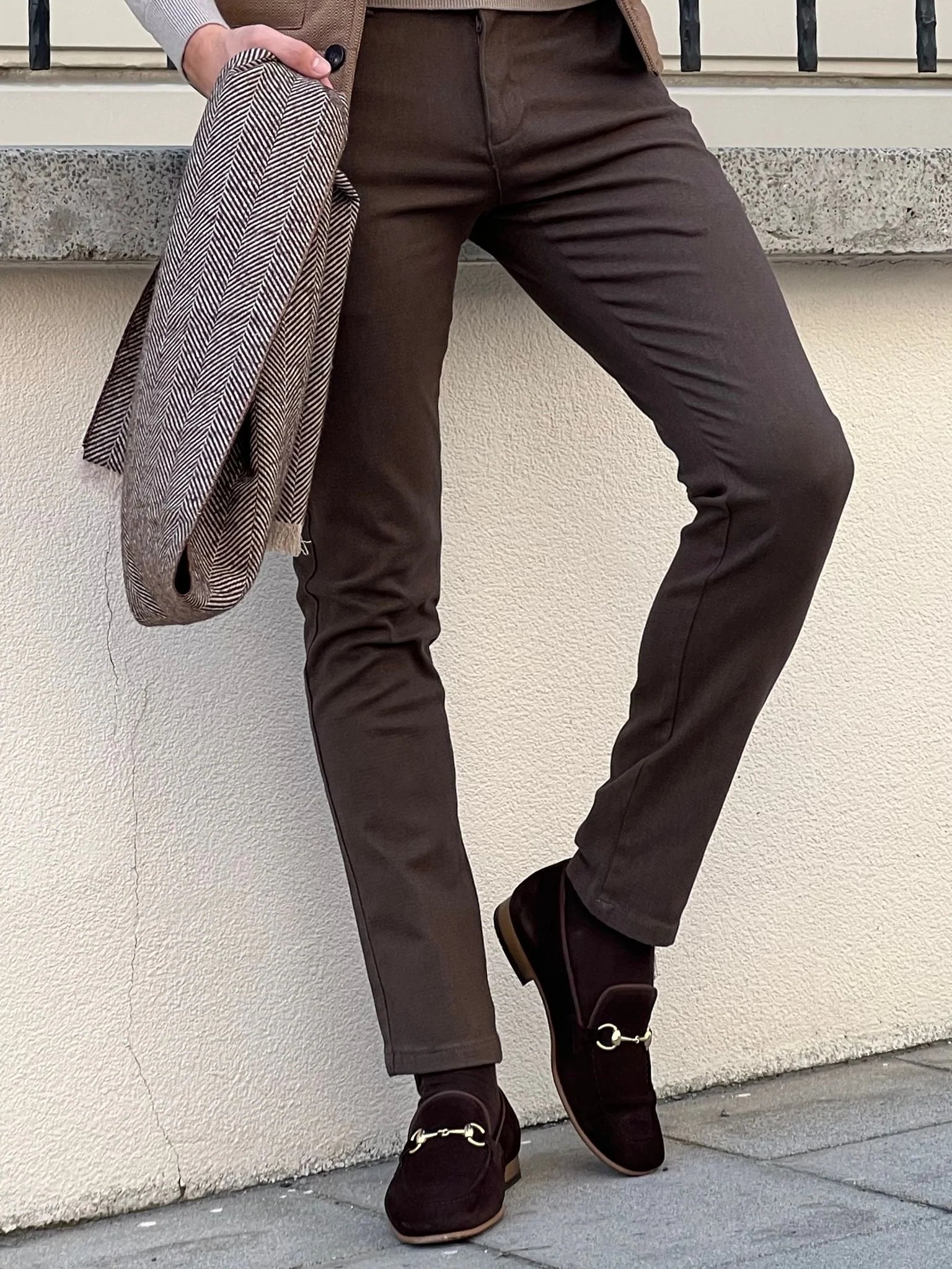Discover the Benjamin Slim Fit High Quality Brown Patterned Anthracite Pants, the perfect blend of elegance and comfort for any occasion. Crafted from a rich mix of 80% cotton, 15% wool, and 5% Lycra, these versatile trousers are designed to elevate your wardrobe. Whether for a business meeting, a formal event, or a smart-casual outing, they offer a tailored fit that flatters while ensuring all-day comfort. Ideal for pairing with shirts or blazers, these pants embody modern sophistication.