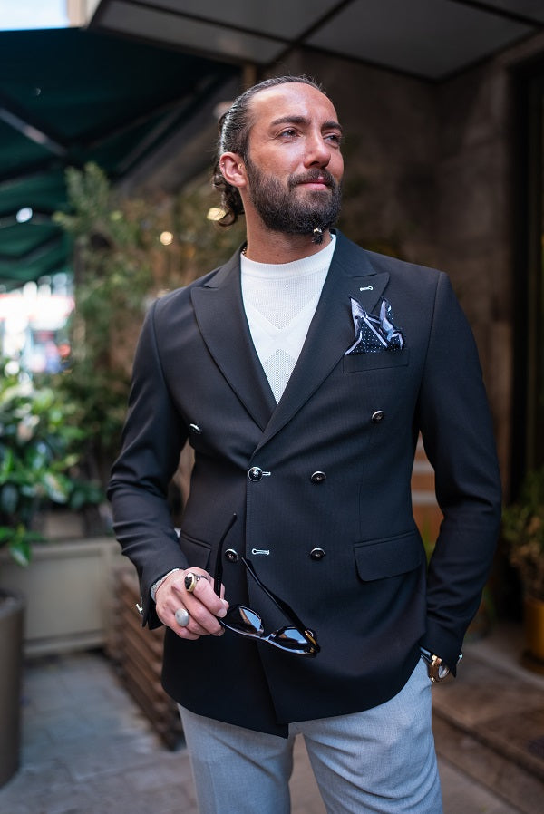 Brabion Lance Black Slim Fit Double Breasted Blazer