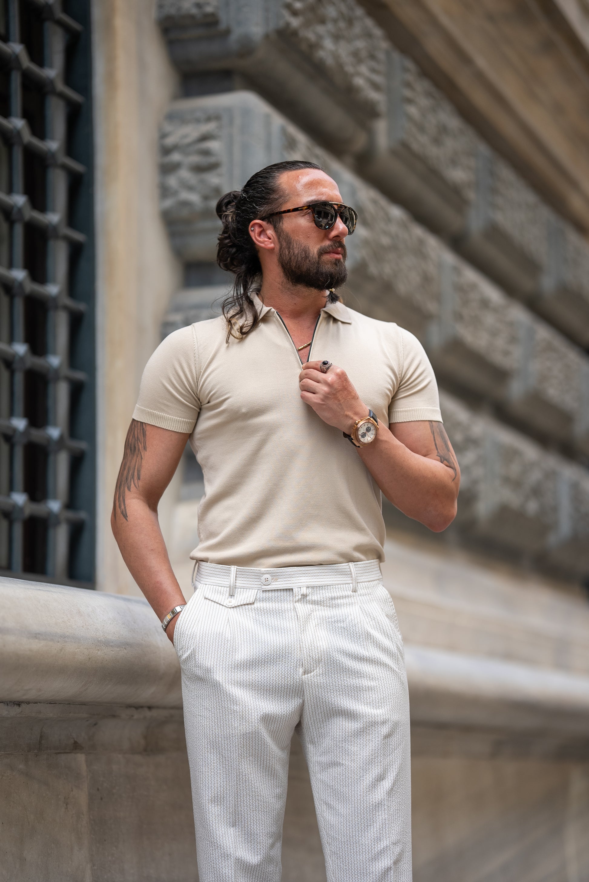 Brabion Tauris Beige Slim Fit Zippers Polo Shirt