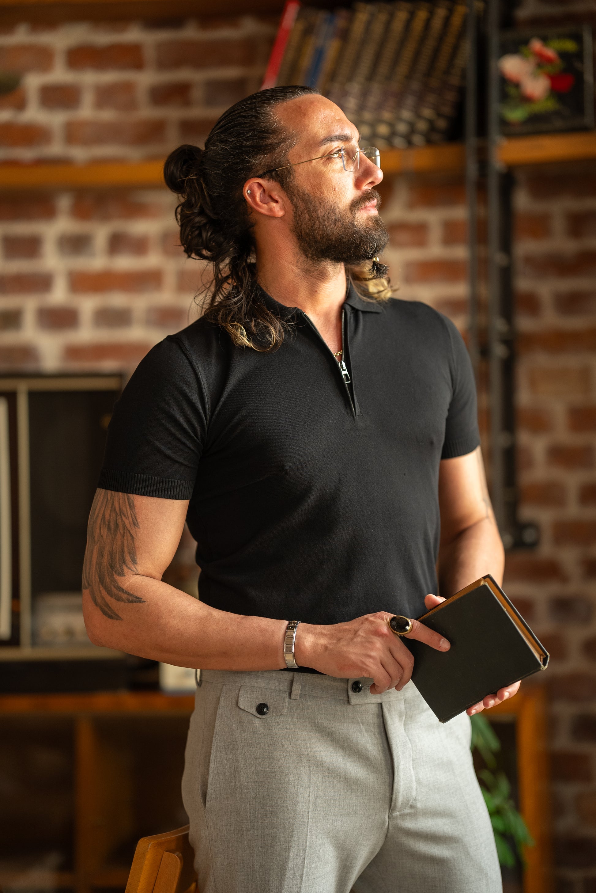 Brabion Tauris Black Slim Fit Zippers Polo Shirt
