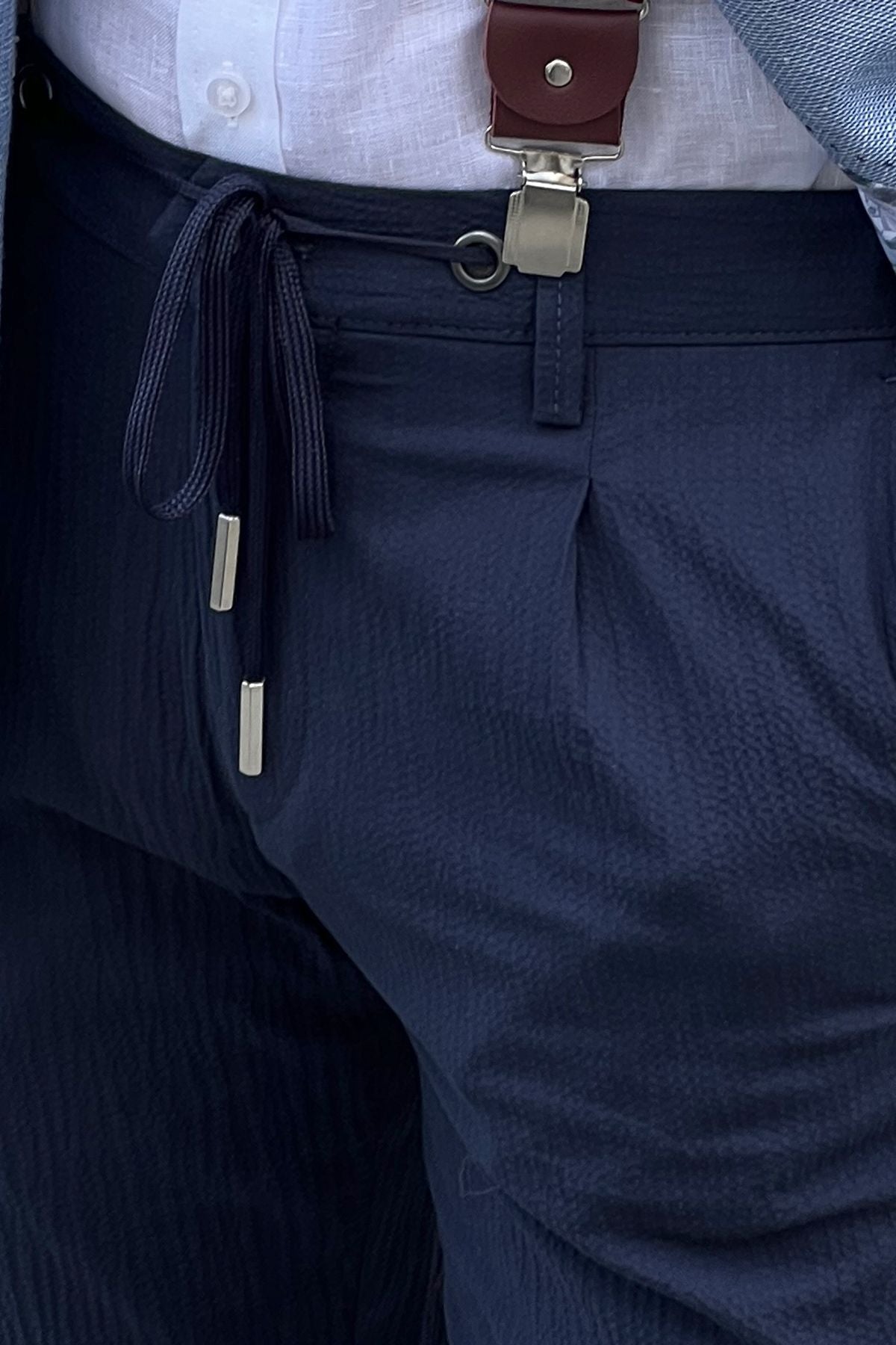 Daniel Navy Blue Cotton Pants - Slim-Fit Elegance