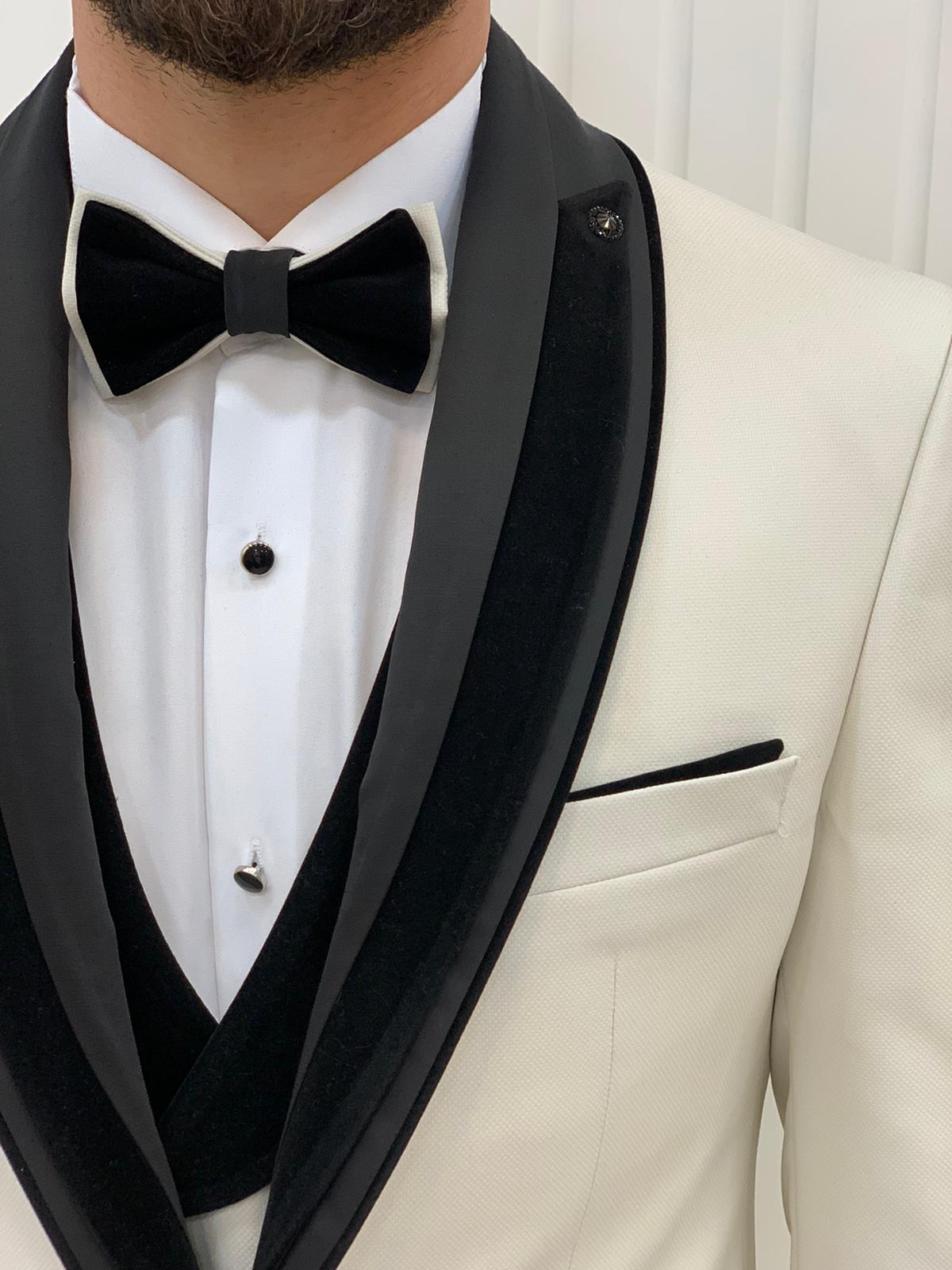 Eden Off White Slim Fit Velvet Satin Shawl Lapel Tuxedo