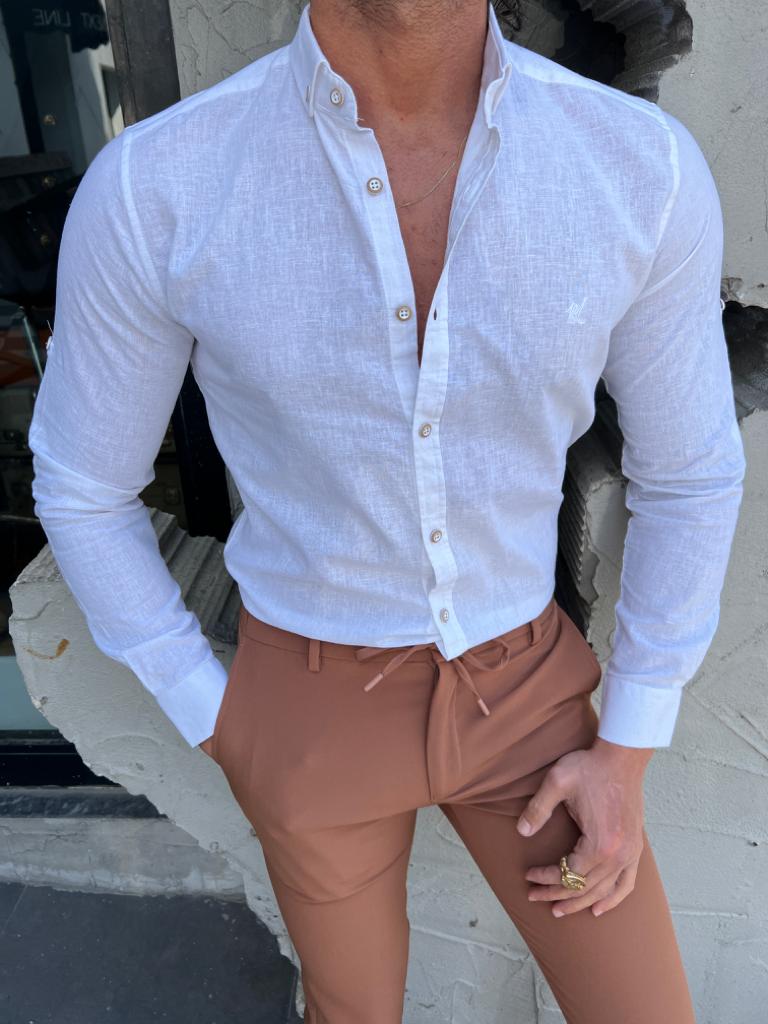 Brabion Evo White Slim Fit Long Sleeve Cotton Shirt