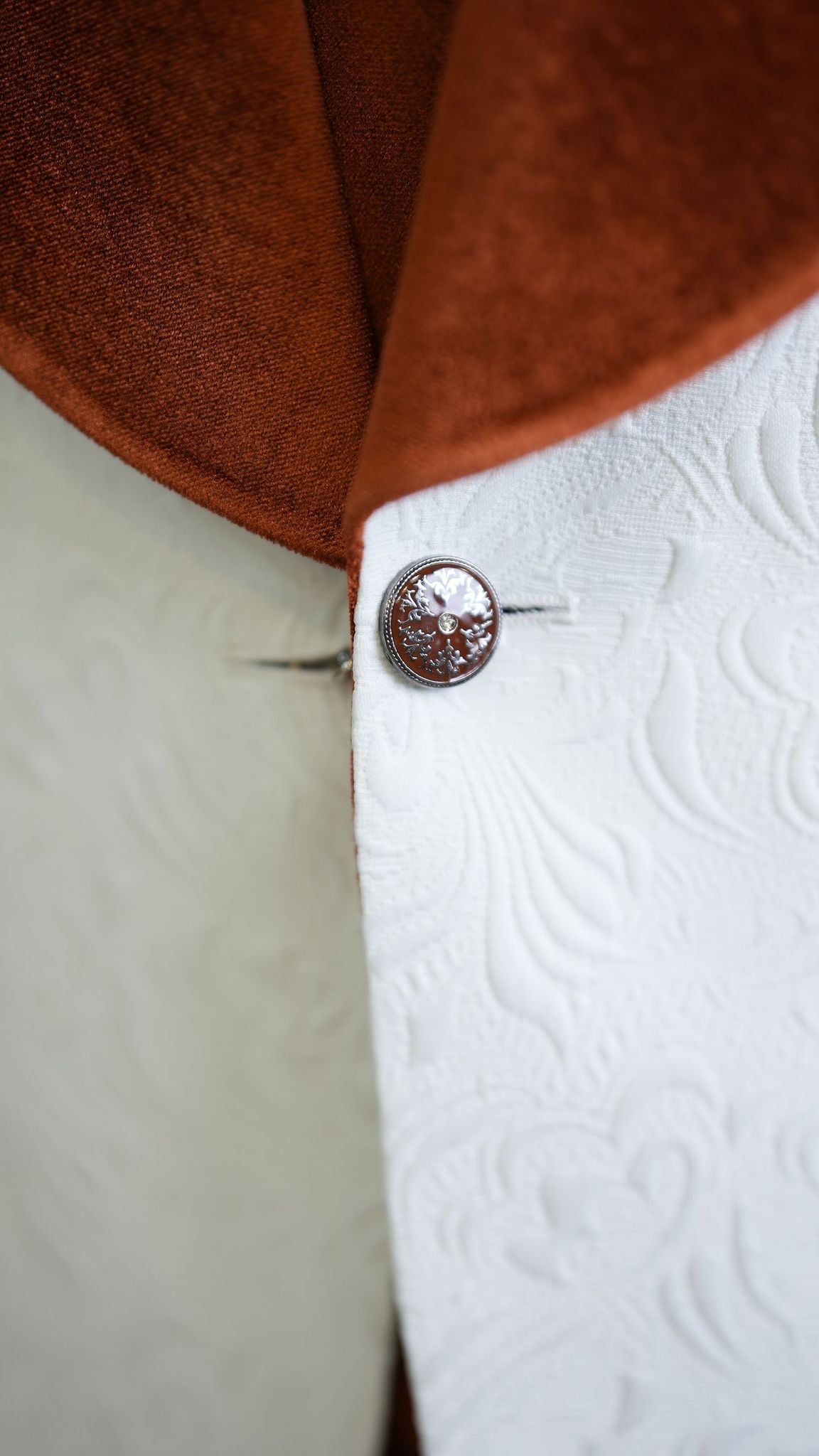 Fiore White Brown Slim Fit Velvet Shawl Lapel Tuxedo