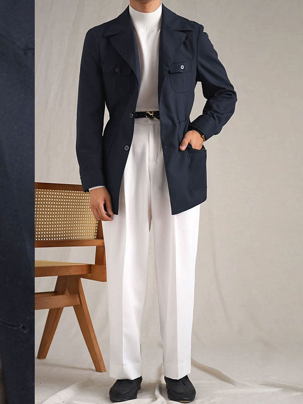 Built on a performance blend of 89% polyester, 9% linen, and 2% spandex, it stays light, flexible, and easy to move in. Choose from navy blue, milky white, or coffee to lock in a versatile rotation.