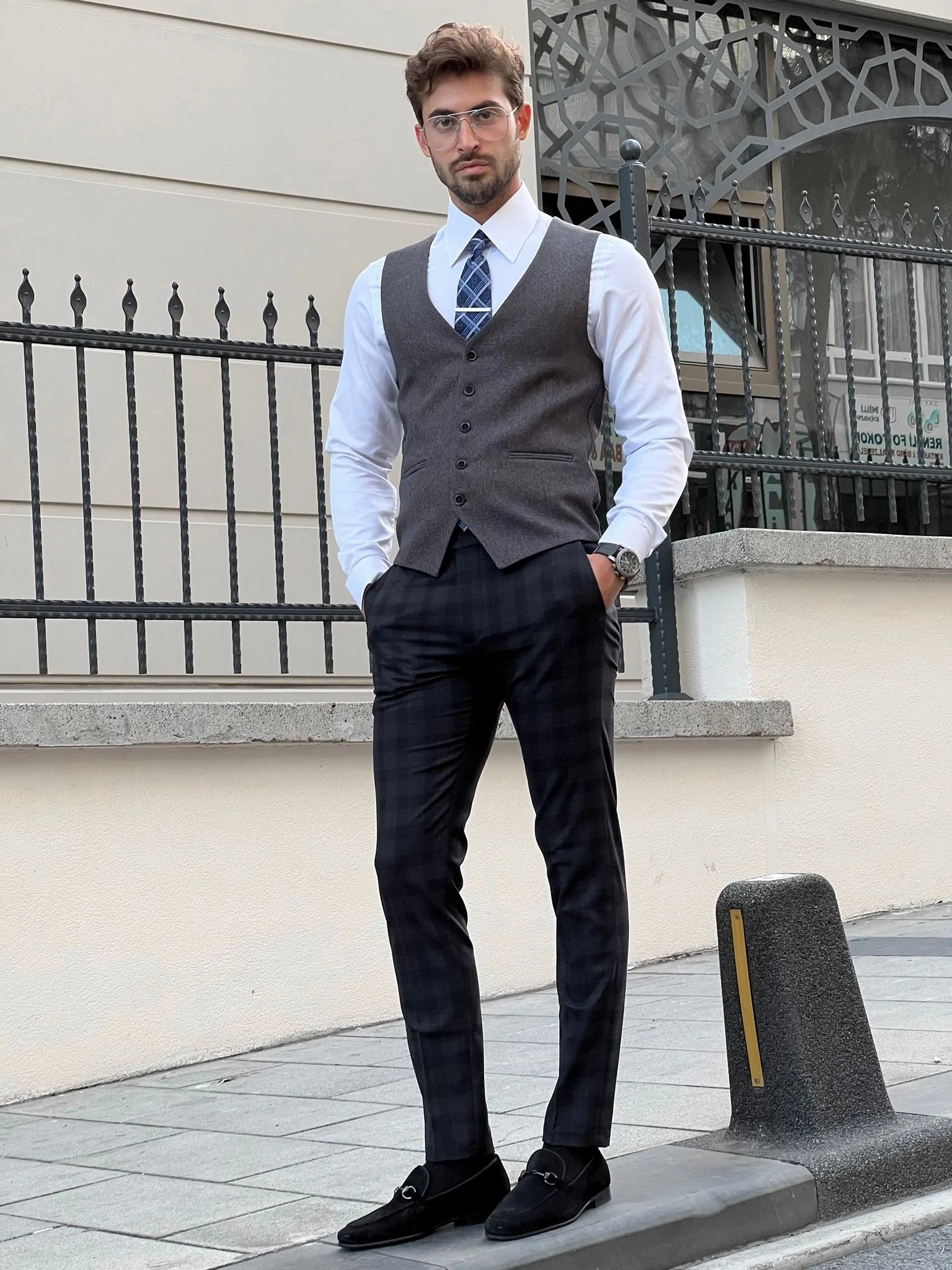 The Stefano Slim Fit Anthracite Woolen Vest is the perfect addition to your wardrobe, offering timeless style and unmatched comfort. Crafted from a blend of 38% wool, 27% viscose, 33% polyester, and 2% elastane, this vest’s sleek design makes it suitable for both casual and formal settings. Pair it with a tailored shirt for a smart-casual look or wear it under a suit jacket for formal events. Its slim fit enhances your silhouette while providing ease of movement.