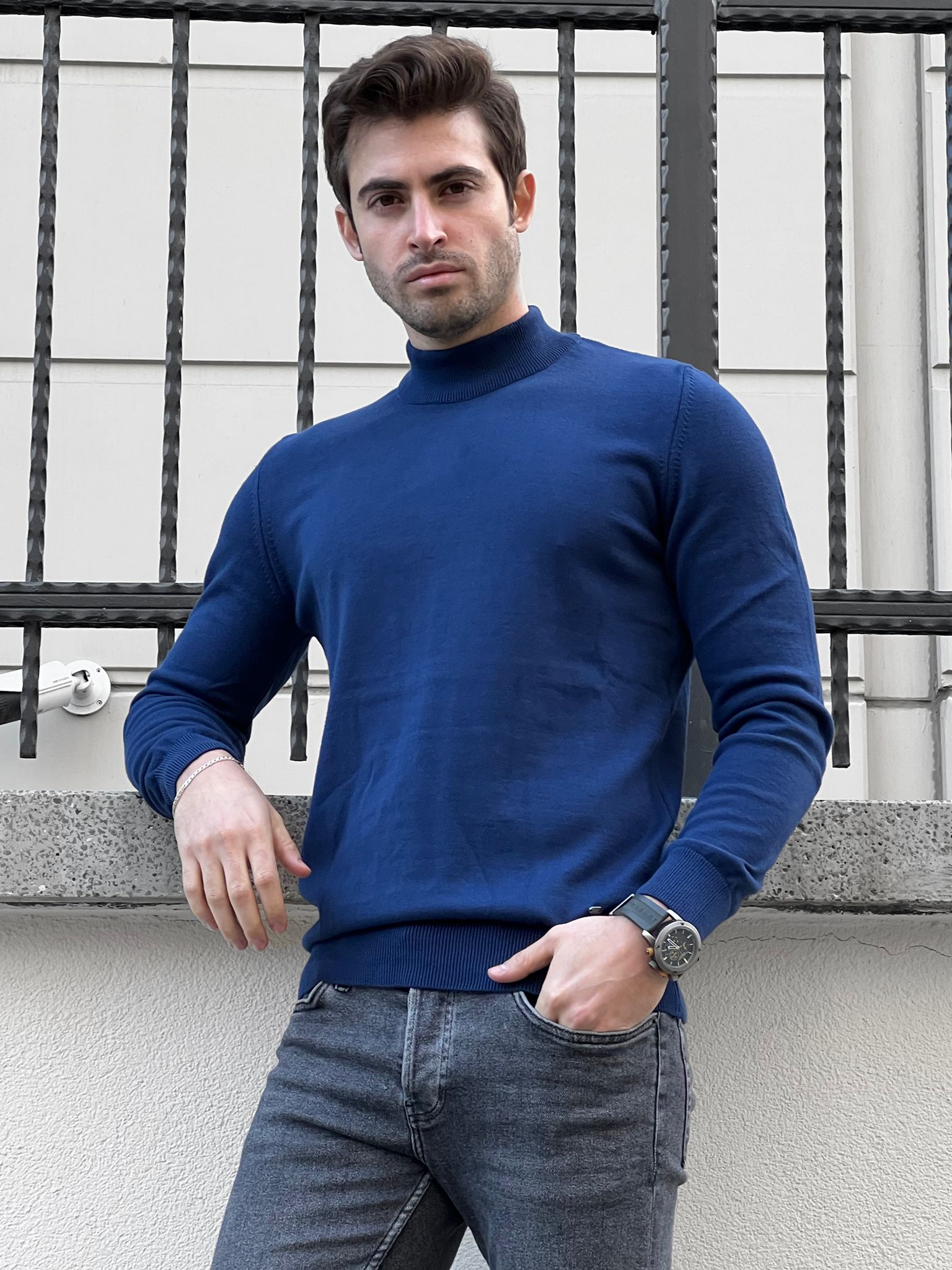 The Stefano Slim Fit Sax Turtleneck Sweater is the perfect piece for the modern man seeking style and comfort. This elegant sweater is crafted from a luxurious blend of 50% cotton and 50% acrylic, ensuring a soft touch and warmth during colder seasons. Its refined slim-fit design makes it a versatile choice for both casual outings and smart-casual events, allowing for effortless layering and sophistication. Easy to care for with machine washability, this sweater is an essential addition to any wardrobe.